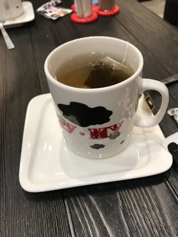 На входе, видимо официантов, услышав доброе утро, молча медленно развернувшись заходит за стойку... из *большого* выбора супов только борщ, беру.. на второе язык и гречка. Борщ налитой в горшочек трудно есть ложкой, на не приспособлен он, горшочек этот для жидкой еды, но ничего, справляемся) .. и конечно же ни на кассе ни на раздаче о пожелании приятного аппетита не слышали, кассиров здоровается когда ты с ней первый.. наверное так надо) сажусь за столик, и тут же наша знакомая со своей коллегой видимо переписывают за соседним.. это нормально) но потом она ложит голову на стол и спит!)) Наверное утомила ее эта работа в кафе, или разморила.. ))