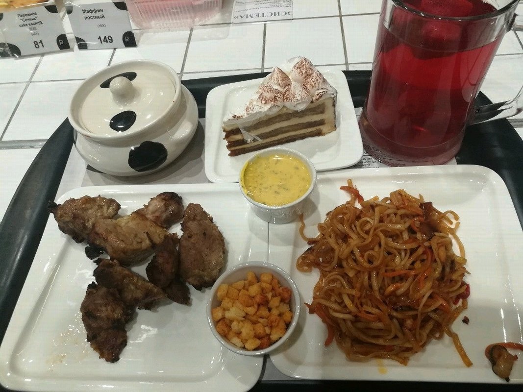 Решил перекусить в ожидании вылета. Обед за 249, комбо.. Щи, я такого не пробовал прежде, не рекомендую однозначно, мог бы просто воды попить, пельмени на второе, сквозь зубы персонал сказал жди пол часа.. Так вышел обед мне в 410₽, за отвратительное обслуживание и обедом бы я это не назвал.