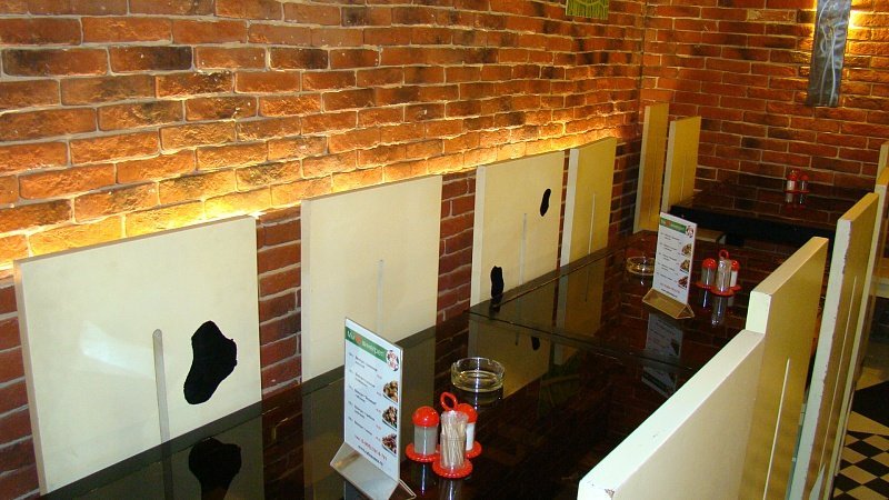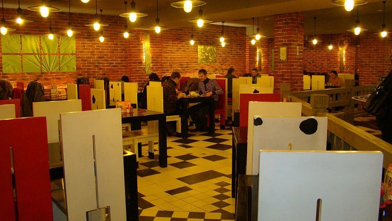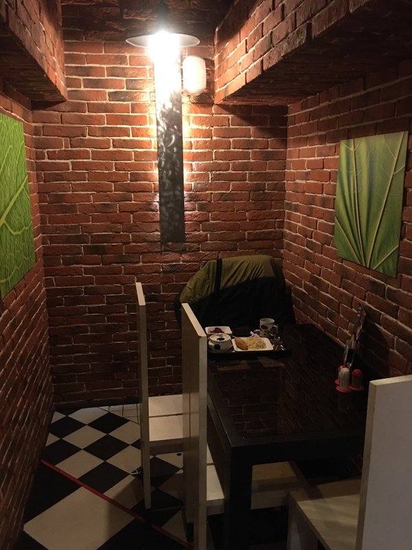Очень не нравится , когда спускаешься в помещении ступенек не видно из за рисунков квадратов на полу , будьте осторожны там , во вторых подвал , темно , шумно , душно , никого аппетита там кушать , когда говоришь что надо на раздаче не всегда внимательно слышать , вечно спешат ((((