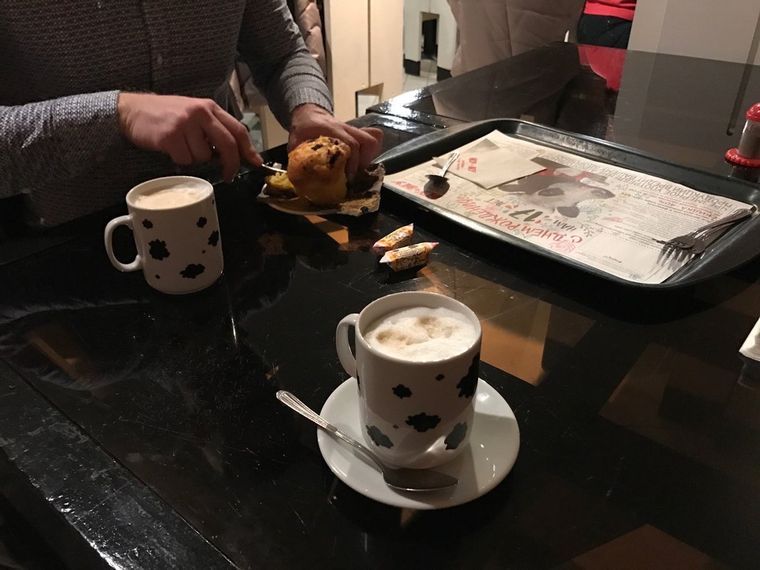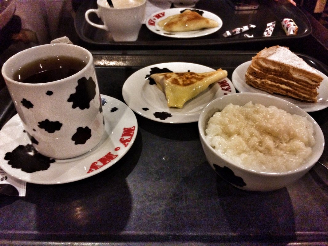 Даже если в кафе захожу не совсем голодной, то настолько все аппетитно выглядит, что обязательно беру перекус. Или кофе или чай с десертом — это точно. По сытности и разнообразности му-му мне очень нравится.
