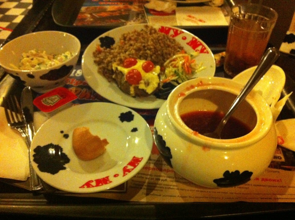Охренел от стоимости 1 грамма отварного говяжьего языка! 2 рубля 80 коп. Притом что кг языка стоит около 400руб (40 коп.за грамм).Сеть Му-Му, конечно, покупает по оптовым ценам, и понятно что ниже 400 руб.Я не понимаю откуда такая накрутка???Отварить этот язык и увеличить стоимость почти в 7 раз!!!)) Сам много раз бывал в этом кафе. Средний мой чек 360-400руб. НО ЯЗЫК ОТВАРНОЙ ЗА ТАКУЮ ЦЕНУ МЕНЯ УБИЛ ПРОСТО.